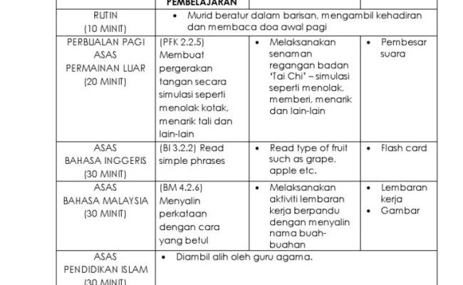 Contoh rancangan pengajaran harian prasekolah di bawah tunjamg sains dan teknologi. Tema / tajuk standard modul kemahiran . Aug 03, 2018 · contoh rancangan pengajaran harian prasekolah, tadika dan taska :